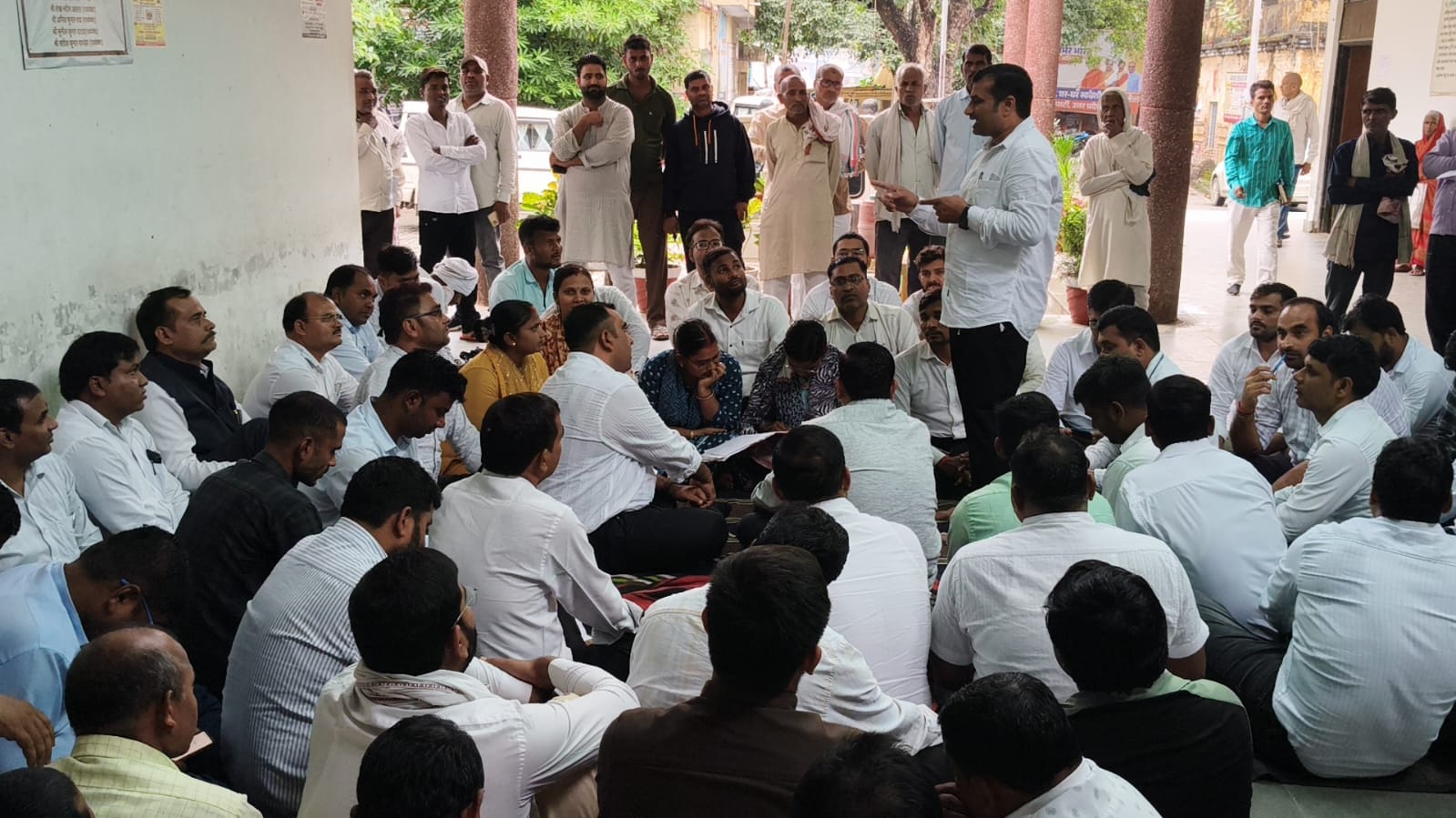 Ghosi (Up News) : रिश्वतखोरी के आरोप में निलंबित लेखपाल के समर्थन में तीसरे दिन भी लेखपालों का धरना जारी — संपूर्ण समाधान दिवस का किया बहिष्कार